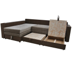 Этот диван сочетает в себе практичность и лаконичность. Идеально подойдет для современного интерьера гостиной. Лорд имеет, так популярную сейчас, выкатную систему, что позволяет использовать его для каждодневного сна . Диван очень легко раскладывается, имеет две вместительные ниши для белья. Угловой Лорд имеет большие размеры, выглядит массивным монолитом, при этом обладает ортопедическими матрасами и очень удобен. В комплект данной модели входят три подушки и три декоративных валика которые смягчают и удачно дополняют его внешний вид. На выбор можно заказать тканевые подлокотники или с ламинатом. Стоимость изделия зависит от выбрвнной категории ткани.