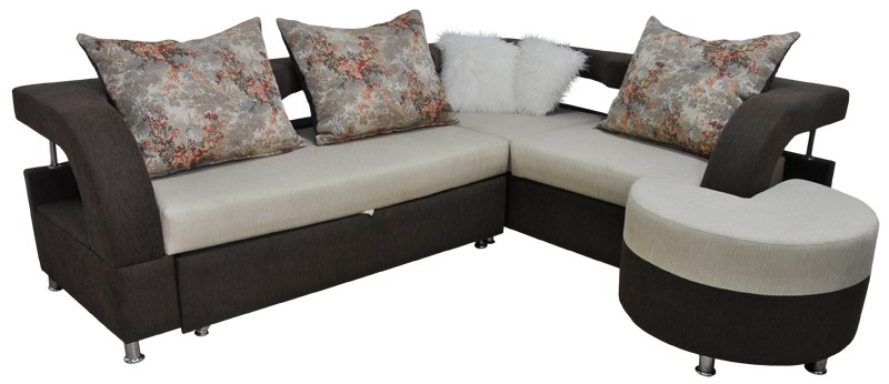 гловой диван Миллениум с приставным пуфом обладает оригинальным дизайном и хорошими техническими характеристиками, чем и привлекает к себе внимание. Кроме интересного внешнего вида, угловой диван обладает вместительной нишей для белья и раскладным механизмом - дельфин. Также Миллениум имеет ортопедические матрасы с пружинным блоком и спальное место на ламелях. В комплект входят приставной пуф (840х840мм), три обычных и две декоративных подушки.