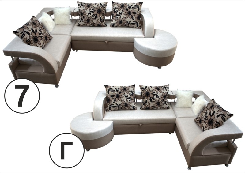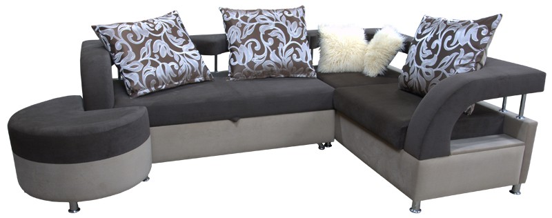 гловой диван Миллениум с приставным пуфом обладает оригинальным дизайном и хорошими техническими характеристиками, чем и привлекает к себе внимание. Кроме интересного внешнего вида, угловой диван обладает вместительной нишей для белья и раскладным механизмом - дельфин. Также Миллениум имеет ортопедические матрасы с пружинным блоком и спальное место на ламелях. В комплект входят приставной пуф (840х840мм), три обычных и две декоративных подушки.