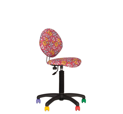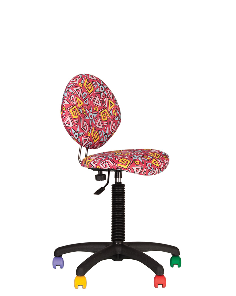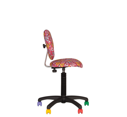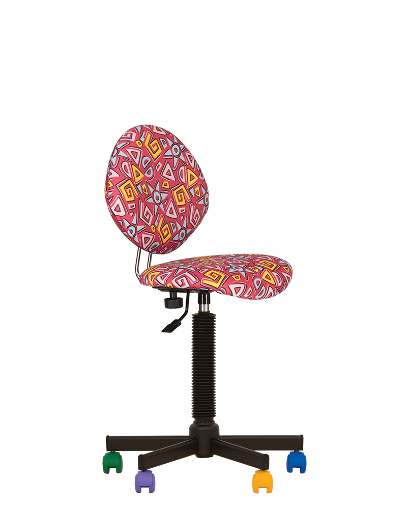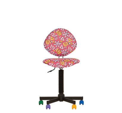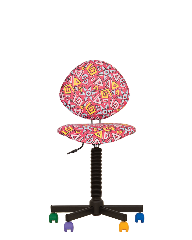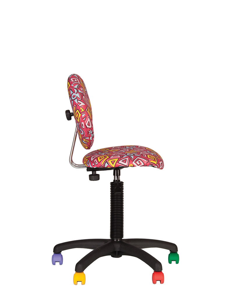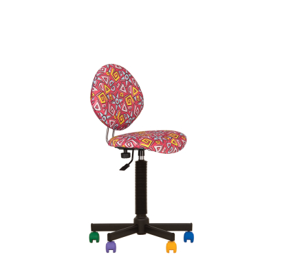 Сидение и спинка: - мягкие обитые сидение и спинка; - профилированные; - соединены надежным кроштейном; - регулировка высоты спинки и глубины сидения при помощи винтовой рукоятки. Регулируемая высота сидения. База: металлическая. Ролики: цветные.