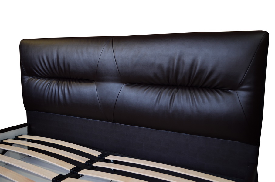 Основа кровати двойной металлический цельносварной каркас, с буковыми ортопедическими ламелями. Высота изголовья кровати составляет 110см. Ножки хромированные, их высота 5 см. Кровать с подъемным механизмом, система газлифт 1200Н (600 и 1500 в зависимости от размера). Боковины и изголовье кровати выполнены из ДСП, наполнение ППУ и синтепон, которые оббиваются кожзаменителем или тканью, крепятся к основанию кровати из металлического каркаса. Высота ящика составляет 25 см, состоит из ламинированного HDF белого цвета и имеет 4 вентиляционные заглушки. Дополнительные опции: ноги-опоры из ясеня (темные, светлые) + 200грн к основной стоимости изделия; высокий короб (high box) который увеличивает высоту короба на 15 см. + 1160грн; опция съемный чехол (lux) + 1160грн; учащенная ламель 21 шт (расстояние 4.5см) + 230грн. Стоимость изделия зависит от быбора размера и категории обивочного материала. На сайте указана стоимость изделия в обивочной ткани первой ктегории.