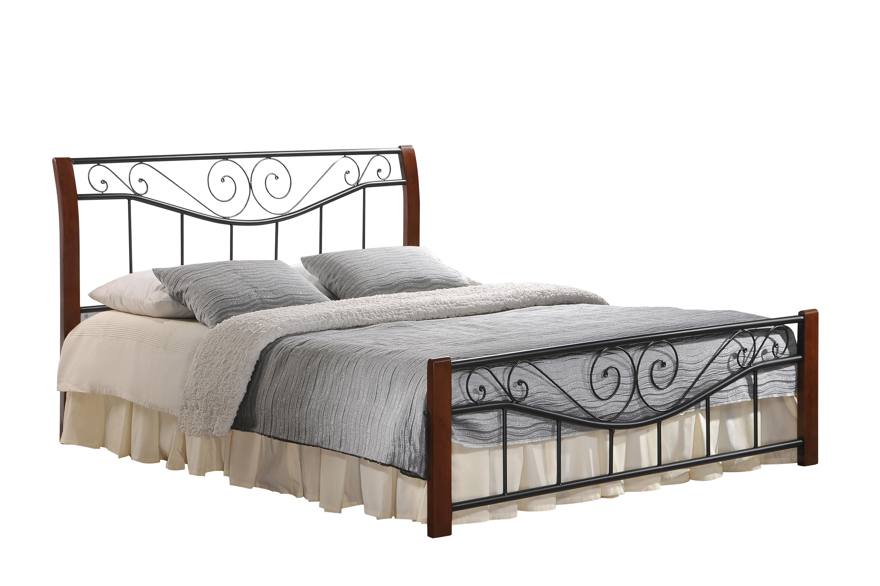 Кровать Ленора изготовлена из комбинации натурального дерева и металла. Декорирована коваными деталями изголовья и изножья. Спальное место 140x200см и 160х200см