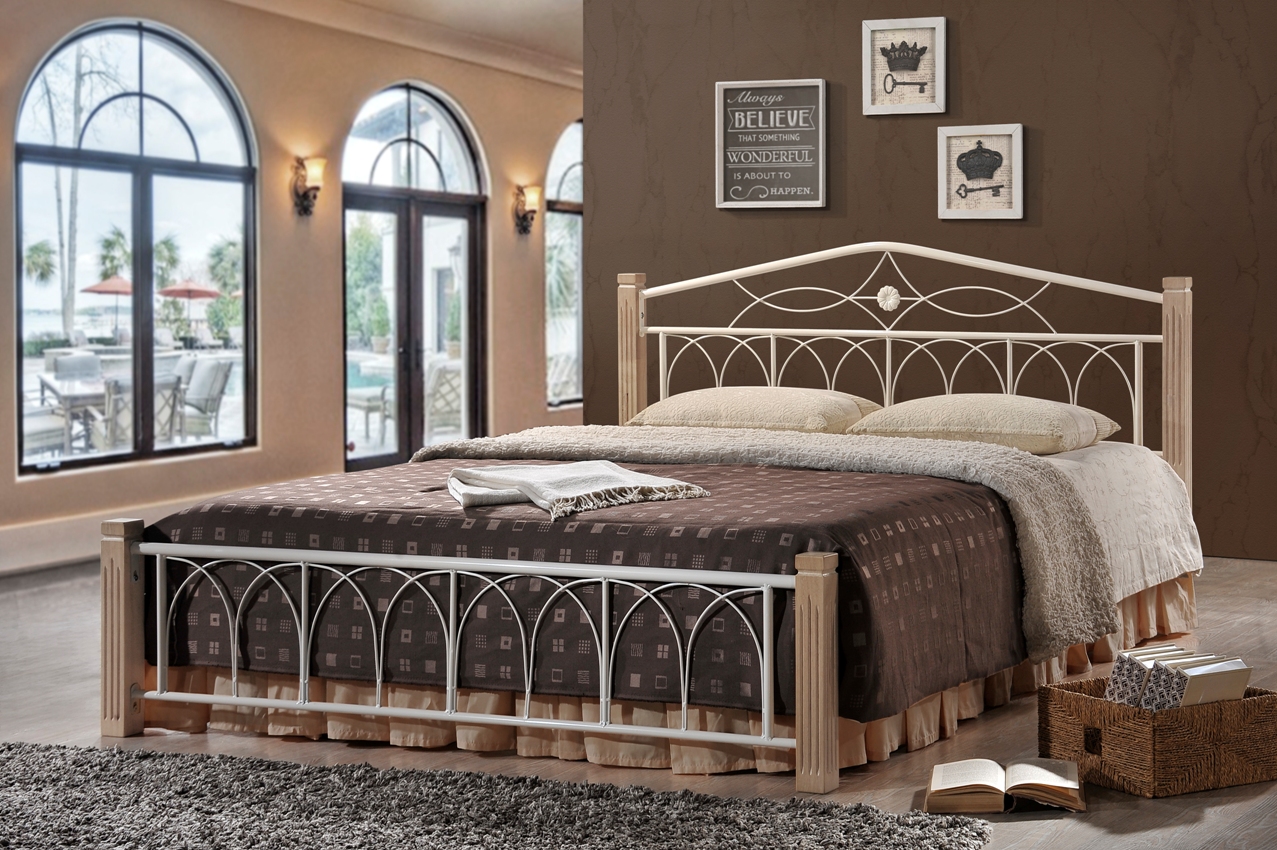 Кровать "Миранда" изготовлена из комбинации натурального дерева и металла. Декорирована коваными деталями изголовья и изножья. Спальное место 160х200 см.
