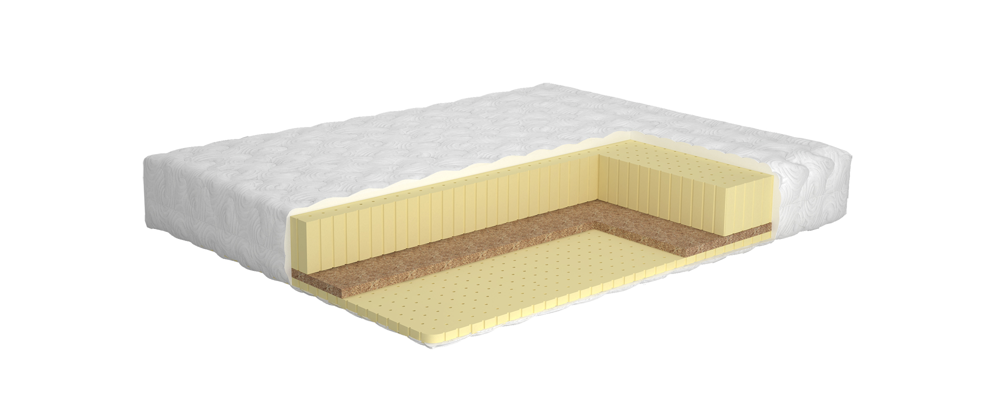 Жесткость: - сторона 1 – средней жесткости; - сторона 2 – мягкий/умеренно мягкий. Внутреннее наполнение: 1.Глубоко прошивной съемный чехол из стрейч-жаккарда; 2.Спанбонд; 3.Перфорированный латекс натуральный; 4.Кокосовая койра латексированная; 4.Перфорированный латекс натуральный; 5.Зонированный латекс натуральный; 6.Спанбонд. Расчет стоимости нестандартного матраса, размеры которого по ширине менее чем 500 мм и/или длине менее чем 1500 мм, производится по индивидуальной схеме.