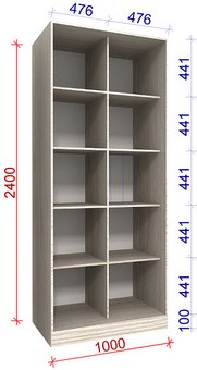 Цена указана за короб шкафа без ящиков. Цена короба высотой 2200; 2300; 2400 составляет 2754 грн. Цена двери из ДСП 857 грн/штука; Из зеркала 938 грн/штука; зеркало с пескоструем 1222 грн/штука; тонированое зеркало (графит, бронза) 1586 грн/штука; тонированое зеркало с пескоструем (графит, бронза) 1762 грн/штука; дверь комбинированый фасад (дсп, зеркало) 1121 грн/штука; дверь комбинированый фасад (цветные стекла или тонированые зеркала) 1249 грн/штука; дверь полноцветная печать 1316 грн/штука. Стандартные цвета ДСП: венге магия, дуб молочный, яблоня локарно, ольха темная, орех лесной, белое дерево, дуб сонома светлый, дуб сонома трюфель, ваниль. Цвет профиля - серебро. Возможна замена профиля на другие цвета с доплатой. 1 ящик на телескопических направляющих 300 грн. Козырек, ширина шкафа 1000-1500 мм -689 грн. 1600-2000 мм -756 грн, 2100-2400 мм - 857 грн. Козырьки комплектуются светильниками в двухдверных шкафах 2 шт, в трехдверных шкафах 3 шт. Козырек для консоли без подсветки при глубине шкафа 450мм -196 грн, при глубине 600 мм - 257 грн.